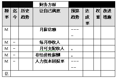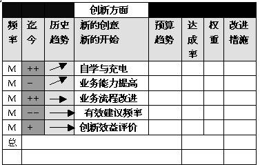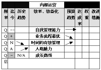 创新学习、内部流程、外部顾客和财务收益这四种绩效标度是内在关联的。用形象化的语言来描述,企业整体战略绩效相当于一棵大树(见图2),只有“根深”(创新学习能力强)、“枝壮”(内部流程有效率)、“叶茂”(顾客满意度高),最后才能“果实”(财务收益好),四个方面有机统一、缺一不可,共同构成战略有效的个人绩效考评系统整体。总之,创新学习能力、内部运作效率、市场营销地位和财务赢利绩效是量度个人绩效的四个战略层面,同时也是体现个人素质的重要基本指标; 定义好个人发展的基本素质指标之后就是如何在我们日常的HR流程中去应用这个模型,在新员recruitment和performance过程中,我们可以把这个模型作为基本的考核指标,在此基础上,我们可以设计一个通用的人才发展素质BSC评价表,如下: