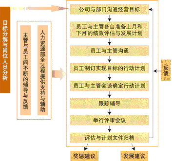 图2说明了员工绩效考核及管理与其他人力资源管理模块的关系。从中可以看出,员工绩效考核及管理就目标分解、行动方案确认、过程关注及结果评估等来看,几乎都是主管和员工不断沟通的过程。这一系列沟通过程,对管理者而言,不仅是管理方式的调整,更是管理角色的重新定位和改变。 |