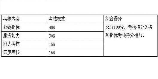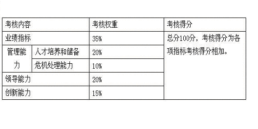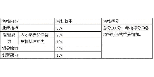 考核方式:实行职能部门经理评分和考核小组确认的两级考核方式。考核方法上实行270度考核法,由员工的上级、同事、顾客(或参考顾客投诉率)进行考核,考核结果直接与工资挂钩,同时结合员工自评。 考核时间,实行全年考核(年度和月度考核)与年终考核相结合的考核模式。考核工作贯穿员工工作的全年,对员工的表现给予及时的反馈,在员工表现好时给予一定的奖励,如员工表现不好,则加强与员工的沟通和交流,进行绩效面谈,制定绩效改进计划,并监督员工实施,同时此计划将列入下月考核项目。 (二)中层管理人员的考核 中层管理人员的考核内容主要是: 1、专业知识和技能的考核,不同的中层管理人员有不同的管理方向,也要求其本身必须具备一些基本的素质和技能,这些能力对他的管理能力起着非常重要的作用,考核时根据中层管理人员的不同管理内容设计考核项目。 2、工作经验,中层管理人员不仅需要有相应的专业知识和技能,在许多时候,他们的工作经验在工作中将发挥更为重要的内容。 3、管理能力,中层管理人员的工作已经在一定程度上脱离了基层的工作,因此,中层干部的管理能力在一定程度上就显得非常的重要。 4、指导能力,中层管理者还应当对自己的下级进行工作上的指导,帮助员工更好的完成工作。 5、沟通和协调能力,工作中不可避免的会发生这样那样的矛盾,作为中层管理人员,他们的沟通和协调能力将是解决员工间的矛盾的关键因素之一。同时,各部门之间也会经常发生一些矛盾,这些矛盾如果不能尽快加以解决,将会影响到部门间的工作,甚至会影响公司内部的团结,能否很好的解决这些矛盾,很大程度上将取决于管理者的沟通和协调能力。 6、创新能力,管理者是否可以经常在工作中对自己的工作方式方法加以改善。 7、业绩指标,无论是什么层次的工作者,他的业绩指标一定是被列为考核中的关键指标之一。 8、工作纪律,包括责任感、工作态度、考勤情况等。