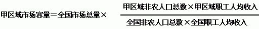 上图为在总体目标情况下的各区域(或业务单元市场)目标成长率的相关考虑因素。同向箭头为正相关,如该业务单元市场的容量越大则其目标成长率越高;公司如果将某区域市场作为战略重点的,其目标成长率应稍高。反向箭头为负相关,如竞争状况越激励则目标成长率越低。当然以上列举的只是主要的考虑因素,实际上对于不同的行业和企业,在制定目标或进行分解时还会考虑产品理想的辐射半径、产品区域市场的适销性、区域消费习性、区域经理的个人能力与抗压性等因素。 对一个锐意进取的公司而言,理想的目标应该是具有挑战性的目标,并已经为该目标准备了战略性资源(是指依靠人员积极性和正确的方法等因素无法达到理想市场效果的资源,即所谓“巧妇难为无米之炊”,如新产品、新的市场投入等)和组织保障。最后,不管目标的制定考虑哪些因素,以笔者多年的实际操作经验来看,所分配的目标有70%~90%的业务单位可以通过自身的积极努力能达成目标是最佳的方案。因为如果该比例过低,则很多人会认为目标“高不可攀”而不愿冲刺;而如果比例过高,则目标没有挑战性,错失当期市场增长的潜力。 市场容量的测算 总体和各区域市场容量是制定和分解目标的主要考虑因素,也是企业战略和市场经营计划的重要参考指标,毕竟企业自己的销量与市场容量的比值得出来的市场占有率才是所有企业衡量自身市场地位、评估竞争态势以及决定未来战略走向的关键指标。总体市场容量一般由国家相关统计部门或第三方权威机构而来,但追求市场经营精准性的公司往往会自己进行相关验证后再进行修正。这种自我求证的方法有行业内专家调研、主要品牌销量加总推算(如某家电行业前5名总年销量为220万台,而中怡康统计显示该行业前5名的合计市场占有率为35%,则可估算该行业的总体年需求量为220/35%=629万台)等方法。 当总体市场容量明确后,各业务单元的市场容量就可以采用经验方法进行推算了(由于中国的区域众多,按行政级别来分就有省、市、县几个层级,如果再考虑直辖市、计划单列市、沿海城市等因素则变量众多,故负有决策职能的企业总部根本无法寄希望于第三方能提供完整的各区域市场容量的数据,而只能依靠自己了。本文为介绍的方便,以耐用消费品行业区域市场容量推算为例)。对以城市市场为主的大部分耐用消费品行业(如空调、洗衣机、冰箱、厨卫电器等),非农人口与职工人均收入是衡量其市场容量大小的关键指标。以厨卫电器行业的三大件为例(油烟机、灶具、消毒柜),2004年全国市场总规模为145亿元。则各区域市场容量可按以下公式来推算。(其他行业也有类似的推算方法)