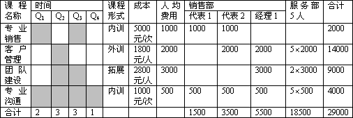 2、具体培训课程的评选 对于具体培训课程(包括内训和外训)的评选,新资源一般从以下几个维度考虑: (1)培训师的实力与培训师的知名度与美誉度。主要从该培训师曾经服务的客户和合作过的机构以及接受过该培训师培训的学员那里了解相关的信息,并进行初步的评价。 (2)培训师所提供的培训课程大纲的适用性、规范性等。主要从大纲所反映的培训目的、培训方式与培训内容、培训风格等方面的信息评价课程对与企业年度培训课程设计的吻合程度。对于按照要求设计的课程大纲则评价其是否符合课程设计的要求。 (3)要求培训师试讲。对于从前面两者评选合格的培训师及相关的课程,必要时对没有直接参加过该培训师培训的培训师要求试讲。试讲的评价标准为IMPACT培训师与课程评价标准: I(Interactive):互动的。培训是互动的。 M( Motivational):激励的。培训师要能够很好地调动学员学习的积极性。 P(Practice):多练习。课堂中必须穿插一定的联系,巩固学员所学到知识。 A(Application):能应用。课程所讲述的理论、观念与方法要能为企业所应用,并且比较超前。 C(Creative):有创意。授课要表现出一定的创意,包括有一定的游戏、案例、讨论等。 T(Touch、EQ):受感动。要求培训师有比较高的感召力,即情绪感染力。 四、年度培训预算与使用 1、企业培训的总预算及其使用 (1)企业培训的总预算。各企业培训的总预算多少不一,这是正常的。但应该有一个适当的比例。国际大公司的培训总预算一般占上一年总销售额的1%--3%,最高的达7%,平均1.5%,而我国的许多企业都低于0.5%,甚至不少企业在0.1%以下。 (2)企业培训总预算的使用。如果包括企业内部人员的费用在内。一些企业的总预算是这样安排的:30%内部有关人员(培训师及行政人员)的工资、福利及其其他费用、30%企业内部培训、30%派遣员工参加外部培训,10%作为机动。如果不包括企业内部人员的费用在内,一些企业的总预算是这样安排:50%企业内部培训,40%派遣员工参加外部培训,10%作为机动。 2、派遣员工参加外部培训 (1)培训公司的成本分割。培训公司的成本大致分割如下:30%培训师费用、15%开发教材或支付版税、20%市场营销费用、15%交税和管理费用、10%操作费用、10%利润。 (2)参加外部培训的费用。国内培训公司目前的费用在每人每天200元至5,000元之间,国际培训公司目前的费用在每人每天100美元至1,000美元之间,而且以每年10%的速度递增。 3、企业内部培训 企业内部培训简称内训,其费用由于形式不同而差异很大。 (1)企业自己培训。即由企业内部培训师培训,这类培训费用最低,如不涉及教材的版税,只要支付员工的工资等费用,再加上一些设备、材料的损耗费。由于企业内部培养、储存卓越培训师的费用过大,再加上不少课程无法自己培训,因此,不少企业尤其是中小企业并无能力胜任自己培训。 (2)聘请培训师内训。目前国内培训师市场价大约在每天3,000元至10,000元之间,国际培训师每天在2,000美元至20,000美元之间。聘请国内培训师费用相对较低,但服务往往跟不上,质量难以保障,不能系统地对培训效果进行评估。 (3)聘请培训公司内训。这种形式最好,但费用也最高,但与派遣相同人数的员工参加外部培训费用相比,又便宜不少。目前培训公司内训的费用大约在每天5,000元至50,000元之间,一些国际培训公司还高一些。由于操作规范、服务精良、培训师一流,不少企业愿意聘请培训公司内训。 下表是某高科技企业做年度培训规划咨询项目中为其编制的部分课程的预算(非真实,单位:RMB元)。 五、培训效果的测定与反馈(评估)