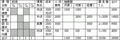 三、年度培训课程体系设计与课程评选 1、年度培训课程体系设计 在制定企业年度培训规划的基础上,必须设计出相应的企业培训课程体系。以下是企业培训开发的“动机行为模型”和针对客户企业中不同对象和不同岗位的课程开发模型。 2、具体培训课程的评选 对于具体培训课程(包括内训和外训)的评选,新资源一般从以下几个维度考虑: (1)培训师的实力与培训师的知名度与美誉度。主要从该培训师曾经服务的客户和合作过的机构以及接受过该培训师培训的学员那里了解相关的信息,并进行初步的评价。 (2)培训师所提供的培训课程大纲的适用性、规范性等。主要从大纲所反映的培训目的、培训方式与培训内容、培训风格等方面的信息评价课程对与企业年度培训课程设计的吻合程度。对于按照要求设计的课程大纲则评价其是否符合课程设计的要求。 (3)要求培训师试讲。对于从前面两者评选合格的培训师及相关的课程,必要时对没有直接参加过该培训师培训的培训师要求试讲。试讲的评价标准为IMPACT培训师与课程评价标准: I(Interactive):互动的。培训是互动的。 M( Motivational):激励的。培训师要能够很好地调动学员学习的积极性。 P(Practice):多练习。课堂中必须穿插一定的联系,巩固学员所学到知识。 A(Application):能应用。课程所讲述的理论、观念与方法要能为企业所应用,并且比较超前。 C(Creative):有创意。授课要表现出一定的创意,包括有一定的游戏、案例、讨论等。 T(Touch、EQ):受感动。要求培训师有比较高的感召力,即情绪感染力。 四、年度培训预算与使用 1、企业培训的总预算及其使用 (1)企业培训的总预算。各企业培训的总预算多少不一,这是正常的。但应该有一个适当的比例。国际大公司的培训总预算一般占上一年总销售额的1%--3%,最高的达7%,平均1.5%,而我国的许多企业都低于0.5%,甚至不少企业在0.1%以下。 (2)企业培训总预算的使用。如果包括企业内部人员的费用在内。一些企业的总预算是这样安排的:30%内部有关人员(培训师及行政人员)的工资、福利及其其他费用、30%企业内部培训、30%派遣员工参加外部培训,10%作为机动。如果不包括企业内部人员的费用在内,一些企业的总预算是这样安排:50%企业内部培训,40%派遣员工参加外部培训,10%作为机动。 2、派遣员工参加外部培训 (1)培训公司的成本分割。培训公司的成本大致分割如下:30%培训师费用、15%开发教材或支付版税、20%市场营销费用、15%交税和管理费用、10%操作费用、10%利润。 (2)参加外部培训的费用。国内培训公司目前的费用在每人每天200元至5,000元之间,国际培训公司目前的费用在每人每天100美元至1,000美元之间,而且以每年10%的速度递增。 3、企业内部培训 企业内部培训简称内训,其费用由于形式不同而差异很大。 (1)企业自己培训。即由企业内部培训师培训,这类培训费用最低,如不涉及教材的版税,只要支付员工的工资等费用,再加上一些设备、材料的损耗费。由于企业内部培养、储存卓越培训师的费用过大,再加上不少课程无法自己培训,因此,不少企业尤其是中小企业并无能力胜任自己培训。 (2)聘请培训师内训。目前国内培训师市场价大约在每天3,000元至10,000元之间,国际培训师每天在2,000美元至20,000美元之间。聘请国内培训师费用相对较低,但服务往往跟不上,质量难以保障,不能系统地对培训效果进行评估。 (3)聘请培训公司内训。这种形式最好,但费用也最高,但与派遣相同人数的员工参加外部培训费用相比,又便宜不少。目前培训公司内训的费用大约在每天5,000元至50,000元之间,一些国际培训公司还高一些。由于操作规范、服务精良、培训师一流,不少企业愿意聘请培训公司内训。 下表是某高科技企业做年度培训规划咨询项目中为其编制的部分课程的预算(非真实,单位:RMB元)。 五、培训效果的测定与反馈(评估)