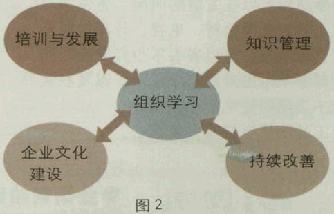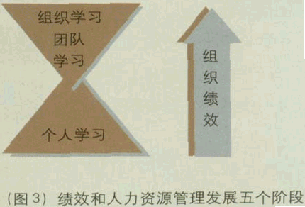澳大利亚国立大学MBA教育中心主任Mark Dodgson教授在其一篇关于组织学习的论文中提出组织学习意味着公司在其特定文化体制下建立、补充以及组织知识和日常工作。目的是为更好地利用工作群体宽广的知识与技能来达到组织更有效、更好的业绩目的。 组织学习包含了四个部分,只有四个部分有机结合(如图2),公司才可以称得上有组织学习的意识,才能往学习型组织方向前进。 1、 培训与发展(目的是提高工作群体的工作态度、工作技能及相关知识); 2、 建立支持团队发展的组织文化(创建良好的工作环境,使知识可以在这样的气氛中更大程度地共享); 3、 注意日常工作的改善(建立有效的流程以及质量管理制度,流程要反映顾客需求的满足); 4、 有系统地管理知识(知识的产生、知识的获取、知识的内化、知识的转换、知识的应用以及知识的保留); 在组织学习的概念中还有一个学习层次的概念.分别为:个人学习、团队学习与组织学习,呈正三角和倒三角的结合形式(如图3)。 正三角的底端是个人学习,是组织学习的基础,没有个人学习,组织学习不可能产生,而倒三角的顶端是组织学习。正三角的顶端是不能达到倒三角的顶端,也就是说只有个人学习,是不能保障组织学习.而只有组织学习才是绩效提高的直接原因。而把正三角与倒三角结合在一起的就是——团队学习。团队学习是一种集体性的纪律行为,人们在一起将进行充分的知识共享、深度汇谈和讨论,最终控制或解决问题。运用得好,团队学习可以产生极大的创造力,但也可以完全发挥不出来。如果企业文化中没有真正意义上的开放式沟通氛围、相互尊重与平等的关系和有智慧的人才,知识共享将不可能实现,团队的智慧也就无法产生。 绩效管理系统是人力资源部门工作非常重要的部分。在这一系统中除了目标设定于绩效考核之外,还应该注意绩效模型中的几个层面(如图4)。