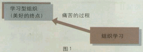 在后培训与发展时代,管理者的注意力要放在组织的整体绩效上,而不只是个人的能力与产出。 “什么是组织学习”?一位电信公司的人力资源经理这样回答笔者的问题“组织学习就是把大家都组织起来,开展各种各样的学习活动。”而后他又十分苦恼地说:“我们公司干部有2000多人,而负责培训的人员只有三位。老板要求所有干部每年必须接受一定课时的培训,所以我们一天忙到晚就是在排课、找老师、做学员报名、提醒学员来听课、控制课堂纪律、组织学习考试等,根本没时间去想培训应该怎么做才有意义,才能与企业绩效联系起来。而且我们也没有办法证明给老板看培训效果究竟有多大。” 也许你与这位人力资源经理一样,认为从事培训工作最大的挑战就是在培训的效果衡量以及培训如何与绩效挂钩。笔者将从如何正确理解组织学习以及组织学习与绩效之间的关系来探讨这些问题。 组织学习:通往学习型组织的痛苦过程 组织学习与学习型组织在概念上有区别,也决不能简单地理解为“组织大家学习”。学习型组织是美好的终点,而组织学习是通往学习型组织的痛苦过程 (如图1)。