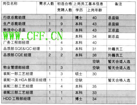 深圳开发科技股份有限公司(以下简称“深科技”)是中国最大的生产计算机硬盘碰头部件的高新技术企业,该公司磁头茸产量位居世界第三位,2002茸出口达60多亿元。人力资源管理的不断创新和提升是“深科技”的核心竞争力之一,为了充分开发公司内部人力资源,挖掘人才,2002年6月17日,公司人力资源部在电子公告板上发布了《关于公开招聘总裁助理和物流总监的通知》。这个公告犹如一声霹雳,深深震憾了“深科技”5000名员工,也就是从那一刻起拉开了“深科技”对传统人事任免制度改革的序幕。 一年过去了,究竟有多少中、高级经理岗位是通过公开竞聘实现了人才的选拔,成效如何呢?请看下表的简要统计: