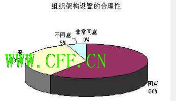2.近7成员工熟知企业的精神和价值取向 “×××××××××”,几乎感染了公司的所有员工,可见企业文化在较大程度上凝聚了员工的敬业度和忠诚度。 3.企业文化建设、公司制度建设仍需努力 调查数据显示,认可公司有一个非常健康文化的比例达到55%,而45%左右员工则认为一般,但可喜的是,没有员工对此表示反对。 相比而言,仅有15%的员工认为公司的制度体系非常完备,而认为不完备的人数达30%。 二.组织架构与岗位设置 1.近9成员工认同公司现行组织架构,并表示现有其与部门业绩息息相关 公司现有员工中,9成员工对现有机构设置表示赞同,认为现行设置方式有利于部门业绩的获得和目标的实现,并在实际工作中发挥了机制性的作用,见下图。