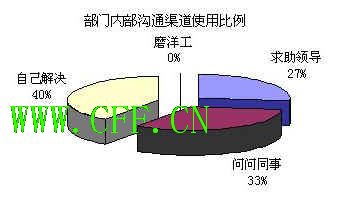 2.部门内部沟通基本顺畅,但部门间急需加强 多数员工普遍反映,在实际工作中,上级对其的工作支持力度较强,并就工作内容进行沟通,但从后续问题的调查显示,部门内沟通并没有达到预期要求;而关于部门间沟通,更多的员工反映,部门间的工作衔接并不十分理想,很多时候只是员工自己沟通和联系,而部门负责人沟通比例也仅占29%。 对于部门内部的员工间沟通,调查者则在三个方面表现较为均衡:自己解决、问问同事、求助领导。