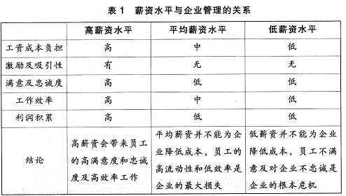 2.薪酬水平定位必须差异化 为了支持公司不同阶段战略的实现,需要对薪酬水平采取不同的定位。薪资水平与企业管理的关系如表1所示: 从上表可以看出,较低的薪资水平并不能为企业降低成本,企业应着眼于长远发展,为员工提供合理的薪资水平,提高员工的满意度。进入二次创业阶段的民营企业,处于发展阶段,需要大量的高素质人才的支持,而人才的获得需要支付高薪。但员工的薪酬与企业负担能力的大小也存在着非常直接的关系。一个采用75P策略的公司,需要雄厚的财力、完善的管理、过硬的产品相支撑。因为薪酬是刚性,降薪几乎不可能,一旦企业的市场前景不甚乐观,将会难以维持员工的忠诚度。 对于家具制造业,从事生产、销售、跟单工作的员32的流失率普遍较高,而留住优秀的技术人员、业务员和跟单员对于企业发展和稳定具有重要的意义,对于他们,企业应该为其建立具有挑战性和吸引力的薪酬体系。为减少企业负担,企业可以采取对不同层级的员工采取不同的薪酬水平定位。企业可以对关键人才如高层管理人员、销售人员和研发设计人员等采取略高于平均水平的薪资,如60P;对于重复完成规定的简单任务为主,在人才市场上也比较容易寻找到的员工,可以采用50P。 薪资水平的设计还需与企业的经营目标相一致,将高风险、高绩效与高工资、高收入结合在一起,这样既能提高公司对关键人才的吸引力,推动公司的迅速发展,又能有效控制公司的薪酬总额。 3.员工绩效应与组织绩效挂钩 家具制造业仍然采用传统的绩效工资,通常只依据个人绩效,而不关心团队绩效,奖励制度也只关注个人成就,这将导致团队成员间的激烈竞争;而且有些团队通过牺牲其他团队和整个组织的利益来实现自身利益的最大化,最终团队的绩效目标与组织的整体目标出现了很大的偏离。这样,虽然公司上下所有员工都在努力工作,但企业绩效仍达不到所预期的目标。 因此,企业要想在全球竞争中寻求生存和发展,必须实施团队激励计划,员工因团队业绩而受到集体奖励,不仅会产生集体荣誉感,而且可以增强企业团队的凝聚力,促使员工为提高团队绩效而努力工作,从而提高企业竞争力和改善组织绩效。改进后的绩效薪酬如下: 部门季绩效薪酬实得总额=当季公司业绩系数X当季部门绩效系数X当季标准绩效工资总额 注:(1)公司绩效系数:公司业绩得分/100