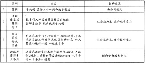 欧洲私营企业的人力资源管理模式也极有特色。在欧洲,许多大型企业都掌控在家族手中,企业人力资源管理一般采用“家长式”作风:给员工提供福利,对员工工作进行紧密跟踪和指导。 3.员工参与管理给欧洲企业人力资源管理带来了新的挑战 世纪之交,欧洲各国企业员工与组织之间渐渐由过去的对立关系演变成为一种建立在忠诚基础之上的合作关系。欧洲各国的企业普遍认识到人力资源对于企业发展的重要性,对人力资源管理予以空前的重视,大力促进员工参与管理和企业文化建设。这种角色的变换给欧洲各国企业的人力资源管理带来了新的挑战。某些欧洲国家还通过法律规定,在该国经营的所有企业必须对员工公开有关信息,甚至包括董事会的决策情况,以达到与员工有效沟通的目的。 二、欧洲人力资源管理的个性特点 虽然欧洲各国的人力资源管理作为一个整体有别于世界上其他国家和地区,但我们也要看到,人力资源管理在欧洲各国之间也存在一定程度的差异。对于欧洲各国具有代表性的分类方法是把欧洲各国分为三类,即:拉丁语系民族(指意大利、法国、西班牙等国)、中欧(指德国、瑞士等国)、北欧日耳曼民族(尤指斯堪的纳维亚半岛的挪威、瑞典、芬兰、丹麦等国),这也是许多研究欧洲的学者所常用的分类方法。我们在这里主要从招聘、培训开发、薪资福利和沟通授权等四个方面来讨论欧洲各国企业人力资源管理的个性特点。 1.招聘 欧洲企业招聘的主要方式是内部招聘。有研究结果表明,欧洲2/3的企业只有30%从外部招聘高级经理。在丹麦和德国,有半数以上的企业先将员工招收为办事员(部分作为学徒工),然后从中为大多数职位谋求合适人员。西班牙国内有66%的专业人员是从企业内部雇员中招聘的,瑞典的情况也是如此。外部招聘被作为一种辅助方式,其来源主要是劳动力市场。 在对员工的挑选上,除了参考申请表和推荐信以外,欧洲企业越来越重视心理测试和面谈。欧洲主要国家企业招聘政策和做法如表1所示。 表1 欧洲主要国家企业招聘政策和做法
