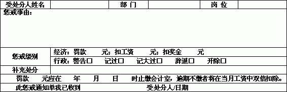 | XX公司员工惩戒通知单 | |||||