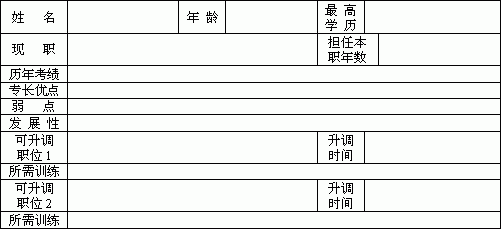 | 管理人才储备表 | |||||