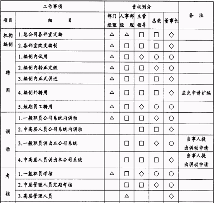 人事管理工作事项责权划分表