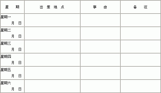 一周出差预定报告表