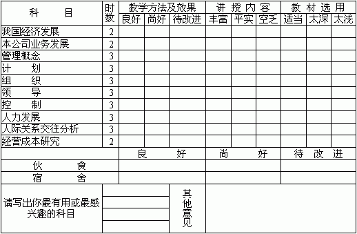 | 主管人员研习班意见调查表 | |||||