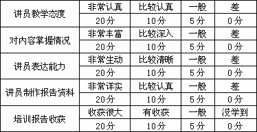 讲员评分:总评分数/总学员数 讲师评定标准 附录10 内部培训评估表 讲 员: 报告内容: 报告时间: 对培训报告的意见和建议: 附录11 客户培训申请表