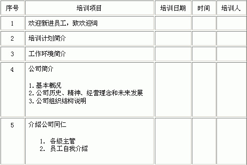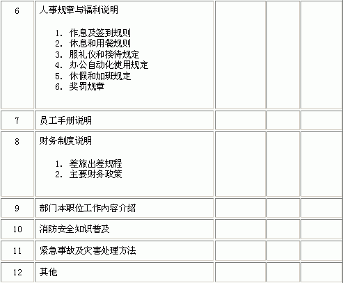 | 新进员工职前培训表 | |||||