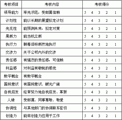 | 经理人员综合素质考核表 | |||||