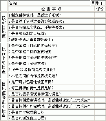 目标值掌握检查表