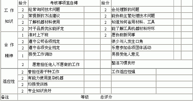 评分标准: 90分以上为“特优”80~90分为“优秀“ 70~80分为“普通”60~70分为“需要努力” 60分以下为“差” |