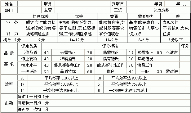 | 营销人员素质测评表 | |||||