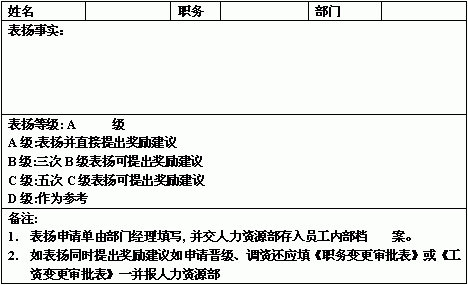 | 员工书面表扬申请单 | |||||