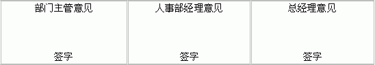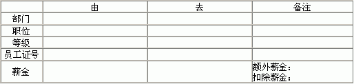 性别__________ 入司日期(________年_______月________日) 生效日期(________年_______月________日) 调动原因: 新上任 升职 薪金调整 完成试用期 辞职 内部调整 延长试用期 合约终止 解雇 最后工作日:________年_______月________日 原员工姓名:____________ 最后工作日:________年_______月________日 年 月 日 |