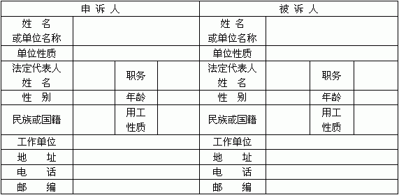 | 劳动争议仲裁申诉书 | |||||