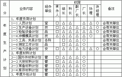 生产管理类职权划分表