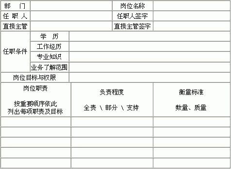 | 岗位职务说明书 | |||||