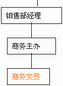 三、汇报程序及督导范围 直接汇报对象:商务主办 直接督导 个岗位,共 人 间接督导 个岗位,共 人 四、岗位职责: 1、商务文件、档案的建立与保管。 2、商务的后勤工作。 3、相关文件的传递与发放及记录。 4、传真机的管理及传真文件的收发记录,信函的收发。 5、营销总部各有关文件的打印,校对。 6、相关销售资料、空白合同的准备,保管。 7、负责对营销总部办公场所5S管理的执行。 8、负责CRM的相关信息的录入工作(定单、客户信息) 8、执行保密制度。 五、权限范围 ·部门员工5S规则执行监督权 ·商务文件管控权。 六、使用设备 电脑、传真机 七、任用资格 受教育程度:中专 年龄:18-30岁 经验:2年以上相关工作经验。 基本技能:文字处理,计算机操作能力。