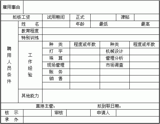 | 员工招聘申请书 | |||||