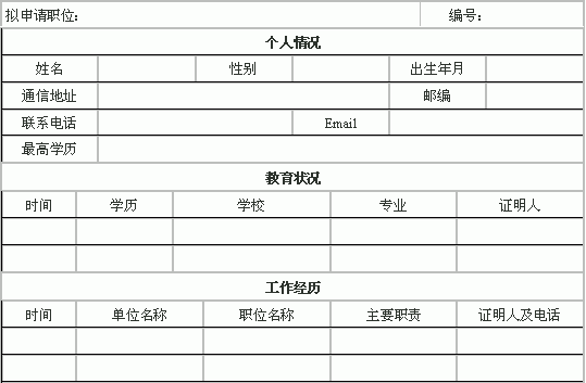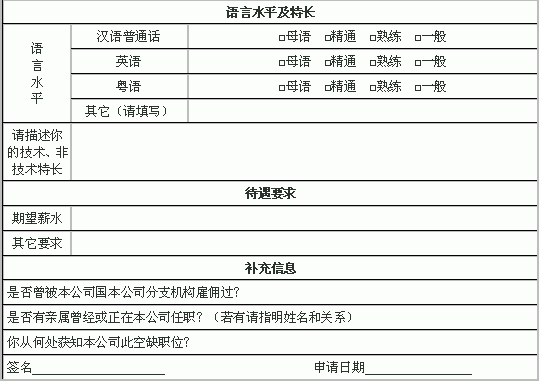 工作申请表范例