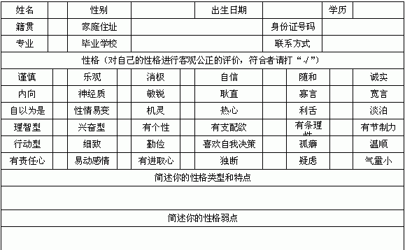 求职人员基本情况登记表