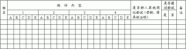 | 面试人员测评表 | |||||