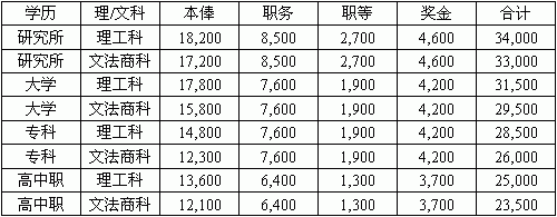 一个新人的薪资结构,例如下表。其中不同学历所列的职务加给,系以一般常态情况下,依据其可能担任的职务,对表找出其职务加给。因此从下表,即可了解每一项目占其薪资的比重。 以男生大学理工为例,从下表可看出是以31500为设计的基础。假若张叁是大学机械工程系毕业,应徵担任「开发技术员」,因其薪资就是本俸17800+职务加给7600+职等加给1900+奖金基数4200,合计31500。假设该员进公司担任的是「开发设计工程助理」,则其职务加给为8000,属四薪等一级。所以其合计薪资为31900。了解为什麽这样吗? 记得前面提过的「同工同酬」的观念吗?就是职务加给依担任的工作而有所不同。这些看起来很麻烦的做法,其实是最能减少因职务调动所产生的薪资争议,也节省主管因部属职务调动所产的处理薪资的时间。 男生 女生 ![]() |