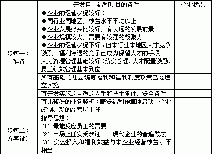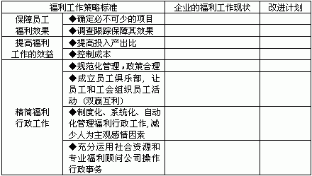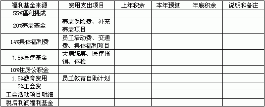 使用说明 检查你的企业是否具备选择开发自主的福利项目的条件。如果必要,为你的企业制定一个福利项目开发方案。 福利预算表 使用说明 上表只是一般的福利预算模式,其中的栏目和项目可以根据企业实际情况增删,福利基金来源栏目中的百分比请根据实际修改。 福利管理工作的境界检查表 使用说明 本表用于检查企业福利管理工作的境界。帮助你找出福利管理中的问题并加以解决,提高福利管理的境界,更好地为企业经营效益的提高做出贡献。 |