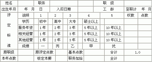 员工工资职级核定表