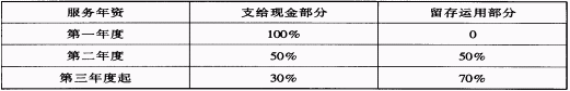 一、从业人员退职酬劳金营运小组办事细则 第一条 依据 本细则依据从业人员职限酬劳金运用及支配办法第17条的规定订定。 第二条 来源 本小组退职酬劳金收入由各公司经股东会承认分配后的拨入数为准。 第三条 执行秘书职掌 本小组执行秘书秉承主任委员命之办理下列事项: (1)酬劳金营运事项。 (2)投资及孳息的分配事项。 (3)小组开会的筹划事项。 第四条 工作区分 有关各公司从业人员退职酬劳金帐卡及手册的填制,由营运小组办理。退职酬劳金的计算及分配清册的造具与扣缴凭单的制发等事项由各公司办理。 第五条 干事与助理干事的设立 本小组设干事一人,助理干事若干名,由公司职员调兼任用。 第六条 干事的职掌 干事承主任委员之命协助执行秘书办理下列事项: (一)受理酬劳金的申请、核发事项。 (二)办理总管理处从业人员退职酬劳金的分配计算及编列清册事项。 (三)有关文件的撰制、保管、审议及开会通知、纪录等事项。 第七条 助理干事的职掌 助理干事承主任委员之命协助干事办理下列事项: (一)退职酬劳金手册的收发事项。 (二)有关有价证券、现金支票等保管事项。 (三)负责收支转帐传票及会计报告的编制、簿籍单据的保管、各项帐册的登记等有关帐务事项。 (四)其他有关文件的收发登记事项。 第八条 财务处理 本小组的财务处理、经费收支依照营运小组议决的办法办理。 第九条 附则 (一)本细则如有未尽事宜随时修改。 (二)本细则经呈请总经理核准后提小组会议备查,修改时亦同。 二、从业人员退职酬劳金运用及支配办法 第一条 本公司为使从业人员提高服务精神、发挥工作效率、谨守工作岗位、期于离职后获得安定生活,特订本办法。 第二条 本公司从业人员退职酬劳金的支配、管理、运用及申领、悉依本办法的规定处理。 第三条 本办法所称从业人员,以本公司编列内的男性从业人员为限。顾问、聘约人员、定期契约人员、临时人员及女性从业人员均不适用。 第四条 本公司从业人员退职酬劳金,按下列百分比支配: (一)普通酬劳金80%。 (二)特别酬劳金20%。 第五条 普通酬劳金5/8部分按从业人员薪资比例分配,其在进入本企业第1年度按6折计算(扣除试用期间后的实际到职月数比例计发,其未满半月者不计,满半月者以1月计),第2年度按8折计算,第3年度按9折计算,第4年度起按十足计算。3/8部分按从业人员提供服务成绩,由公司最高主管核定分配,(进入本企业第一年度者,依扣除试用期间的实际到职月数比例计发,服务未满半年,不参加考绩者,均以甲等计算)。特别酬劳金归经营者所得,由公司最高主管核定支配,其在上年度服务未满1年者不予分配。 前项所称薪资,月给制人员按其每年最后1个月的薪俸(日给人员按其日薪额的30倍)计算,均不包括职务加给及其他各项补助津贴。普通酬劳金的分配,以每年3月1日为发给基准日,其在上年度准予特别病假、公伤假(因执行职务奋勇负责而致伤害,经专案签准其请假期间得予分配者除外)或经呈准非受处分的停薪留职者,按其实际工作月数(未满半月者不计,满半月者以1月计)的比例计算核发。但在发给基准日以前离职者除因公亡故或命令退休或符合人事管理规则第15条第2、3、4项的资遣人员(服务满一年度)外,不予发给。 第六条 退职酬劳金除特别酬劳金得支给现金不参加统筹运用外,普通酬劳金依下表标准,现金部分于翌年6月20日一次发给,其余保留以投资于本企业各公司或购买本企业各公司股票为原则,由本公司职工福利委员会设立退职酬劳金营运小组(下称营运小组)负责管理与运用: