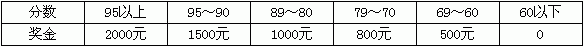 第八条 考勤奖金 公司依据全年度员工勤务表现及贡献程度后,并按下列规定发放标准支付: (一)勤务满一年以上者,其年度考绩成绩平均在80分以上者,则支付半个月的本薪作为当期绩效奖金。 (二)勤务满半年以上者,其考绩成绩在85分以上者,则依其勤务月数乘以半个月的本薪比率作为当期绩效奖金。 (三)勤务未满半年者,原则上不予以发放。但表现优异者,可经由各部门主管人员呈人事科评核后,酌量奖励。 第九条 激励奖金 为激励各部门人员缔造经营佳绩,并争取自我加薪及自创福利机会,可依照下列规定评核: 各部门平均三年内营业总额/365日(一年)×1.10=月业绩目标(基础目标) (一)每周内连续二日(不含旺季及国定例假日)超过基础目标,则于次周发放激励奖金: 经理(副理) 1,000元礼券一张 管理职人员 500元礼券二张 基层勤务人员 500元礼券一张 (二)连续两周内突破基础目标时,则在第二周奖金加倍发放。 第十条 介绍奖金 公司所属各部门人员介绍他人到本公司服务并经人事科面试考核后任用,满六个月以上且无违反公司规定者,则给予介绍人员奖金3,000元;但未满六个月即离职者,则不予以发放。核发的奖金应于被介绍人员满六个月后,与薪资合并发放。 第十一条 全勤奖金 员工在规定勤务时间内按时上下班且未有舞弊者,可按下列规定予以奖励: (一)全月无请假、迟到、早退、私自外出时,则每月发放全勤奖金1,000元以兹鼓励。但以正式任用人员为限。 (二)兼职人员(含计时、计件人员)执行勤务时间,累计达176小时以上,无请假、迟到、早退、私自外出时,则给予全勤奖金500元以兹鼓励。 (三)会计年度期间(从一月一日起至十二月三十一日止)正式任用人员及兼职人员,全年度皆为全勤者,于农历过年后第一天上班团拜时,当场予以表扬并发放3,000元奖金以兹鼓励。 (四)新进人员自任职日起至会计年度终了为止,任职满6个月以上无缺勤记录且考绩成绩在85分以上者,亦具第3项的资格,可给予其奖励。 第十二条 奖学金 为鼓励在职人员发挥所长利用勤务时间外作自我充实进修,进而带动全体同仁间提高各人的专业素养所制定的奖金而言。其规定如下: (一)会计年度期间的季考绩,连续达85分以上者,始具申请奖学金资格。 (二)申请人应于每3月15日及9月15日前十日内,提出书面申请(包括申请书、在学证明、缴费收据等),并经人事科评定通过后,予以支付。 (三)奖学金的发放标准如表6.5.23: