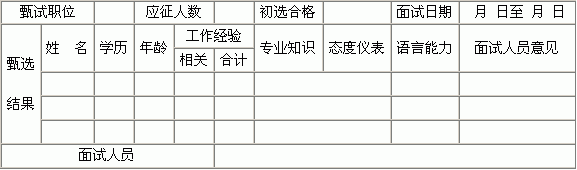 新员工甄选比较表