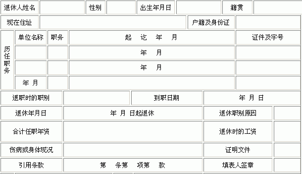 员工申请退休表