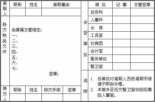 员工离职移交手续清单(二)