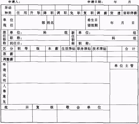 人事异动申请单