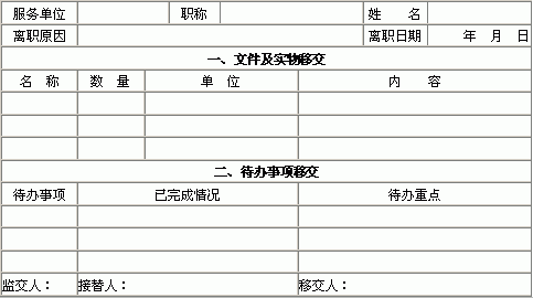 一式三份:一份存单位,一份交离职人收存,一份送人事单位转稽核室。