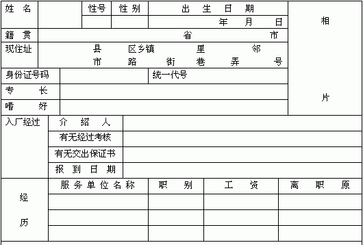 | 员工人事资料卡 | |||||