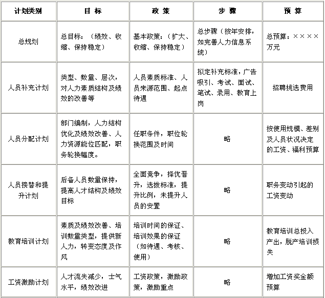 | 人力资源规划内容与程序 | |||||