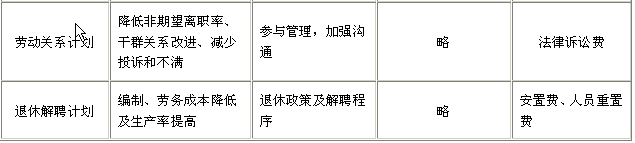 人力资源规划的内容 狭义的企业人力资源规划包括两个层次: ①人力资源总体规划是指在计划期内人力资源管理的总目标、总政策、实施步骤和总预算的安排。 ②人力资源业务计划则包括人员补充计划、分配计划、提升计划、教育培训计划、工资计划、保险福利计划、劳动关系计划、退休计划,等等。 这些业务计划是总体规划的展开和具体化,每一项业务计划都由目标、政策、步骤及预算等部分构成。如表1所示。这些业务计划的结果应能保证人力资源总体规划目标的实现。 表1 人力资源规划内容一览表 人力资源规划的程序 人力资源规划是企业人力资源管理的一项基础性活动。 (1)人力资源规划的步骤 ①调查、收集和整理涉及企业战略决策和经营环境的各种信息。影响企业战略决策的信息有:产品结构、消费者结构、企业产品的市场占有率、生产和销售状况、技术装备的先进程度等企业自身的因素;企业的外部环境包括社会、政治、经济、法律环境等。这些外部因素是企业制定规划的“硬约束”,企业人力资源规划的任何政策和措施均不得与之相抵触。例如,《劳动法》规定:禁止用人单位招用未满16周岁的未成年人。企业拟定未来人员招聘计划时,应遵守这一原则。否则,将被追究责任,计划亦无效。 ②根据企业或部门实际确定其人力资源规划的期限、范围和性质。建立企业人力资源信息系统,为预测工作准备精确而翔实的资料。 ③在分析人力资源供给和需求影响因素的基础上,采用以定量为主,结合定性分析的各种科学预测方法对企业未来人力资源供求进行预测。它是一项技术性较强的工作,其准确程度直接决定了规划的效果和成败,是整个人力资源规划中最困难,同时也是最关键的工作。 ④制定人力资源供求平衡的总计划和各项业务计划。通过具体的业务计划使未来组织对人力资源的需求得到满足。 (2)规划流程 人力资源规划过程还可以归纳为三个:评价现有的人力资源;预估将来需要的人力资源;制定满足未来人力资源需要的行动方案。 ①当前评价。 管理当局要对现有人力资源的状况作一考察。这通常以开展人力资源调查的方式进行。在计算机系统高度发达的年代,对于绝大多数组织来说,要形成一份人力资源调查报告,并不是一项困难的任务。这份报告的数据来源于员工填写的调查表。调查表可能开列姓名、最高学历、所受培训、以前就业、所说语种、能力和专长等栏目,发给组织中的每一个员工。此项调查能帮助管理当局评价组织中现有的人才与技 能。 当前评价的另一内容是职务分析。人力资源调查主要告诉管理当局各个员工能做些什么,职务分析则具有更根本的意义,它确定了组织中的职务以及履行职务所需的行为。例如,在博伊斯—凯斯凯德公司(Boise Cascade)中工作的第三级采购专业人员,其职责是什么?若其工作取得绩效,最少需要具备什么样的知识、技术与能力?对第三级采购专业人员与对第二级采购专业人员或者采购分析员的要求,有些什么异同之处?这些是职务分析能明确问题之所在,职务分析将决定各项职务适合的人选,并最终形成职务说明书说明职务规范。 ②未来评价。 未来人力资源的需要是由组织的目标和战略决定的。 人力资源需求是组织的产品或服务需求状况的一种反映。基于对总营业额的估计,管理当局要为达到这一营业规模配备相应需要数量和知识结构的人力资源。在某些情况下,这种关系也可能相反,当一些特殊的技能为必不可少而又供应紧张时,现有的符合要求的人力资源状况就会安定营业的规模。例如,税务咨询公司就可能出现这种情况。它常发现经营机会远比自己所能处理的业务大得多。其扩大营业的惟一限制因素可能就是,该咨询公司能否雇佣和配备具有满足特定客户要求所必须的工作人员。不过,大多数情况之下是以组织总目标和基于目标规定的营业规模预测作为主要依据,来确定组织的人力资源需要状况。 ③制定面向未来的行动方案。 在对现有能力和未来需要作出全面评估以后,管理当局可以测算出人力资源的短缺程度(在数量和结构两方面),并指出组织中将会出现超员配置的领域。然后,将这些预计与未来人力资源的供应推测结合起来,就可以拟订出行动方案。可见,人力资源规划不仅为指导现时的人力配备需要提供了指南,同时也预测到未来的人力资源需要和可能。 也有人将人力资源规划的程序,分为五个步骤: 第一,弄清企业的战略决策及经营环境,是人力资源规划的前提。不同的产品组合、生产技术、生产规模、经营区域对人员会提出不同的要求。而诸如人口、交通、文化教育、法律、人力竞争、择业期望则构成外部人力供给的多种制约因素。 第二,弄清企业现有人力资源的状况,是制订人力规划的基础工作。实现企业战略,首先要立足于开发现有的人力资源,因此必须采用科学的评价分析方法。人力资源主管要对本企业各类人力数量、分布、利用及潜力状况、流动比率进行统计。 第三,对企业人力资源需求与供给进行预测,是人力资源规划中技术性较强的关键工作,全部人力资源开发、管理的计划都必须根据预测决定。预测的要求是指出计划期内各类人力的余缺状况。 第四,制订人力资源开发、管理的总计划及业务计划,是编制人力资源规划过程中比较具体细致的