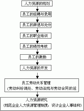人力资源管理的职能 当今的人力资源管理问题是巨大的,并且在不断地扩大。人力资源管理面临巨大的挑战,从不断变化的劳动力到应付不断出现的许多新法规。 人力资源主管应把人力资源管理作为一个系统来开展工作,人力资源管理的职能如下图: 小企业很少有一个正式的人力资源管理部门和人力资源管理专家,如图1所示。相反地,是其他经理在处理人事问题。他们工作的中心一般是雇用和培训有能力的员工。 图1 小型企业人力资源管理的职能 实际中,人力资源管理职能的某些方面,在小企业比大企业中更为有意义。例如,如某一个小企业的业主雇用第一个也是惟一的专职销售人员,而这个销售人员正好疏远企业的消费者,则该企业可能就会失败。在一个大企业中,这样的错误仅具有较小的破坏性。随着企业规模扩大,则需求有一个独立的职能部门协调处理人力资源工作。在一个较大的企业中,所选择的从事这项工作的人会被期望处理大量人事事务,如图2所示。对一个中型企业来说,就没有这样专业化。可用一名秘书来处理信件,而人力资源经理实际上就是整个部门。 图2 中型企业中人力资源管理、人力资源主管的职能 对一个企业来说,当人力资源管理的职能过多时,在人力资源管理经理下面就需要设置一些独立的部门。这些部门将完成涉及人力资源开发、报酬和福利、就业、安全与健康、劳动关系等任务,如图3所示 图3 大中型企业中的人力资源管理的职能 人力资源管理的各个职能不是孤立与无关的,它们是紧密联系的。人力资源的各级管理者必须意识到,在某一方面的决策将会影响到其他方面。因此,人力资源主管更应系统地全面地看待这些职能,处理好与之相关的工作,尽管它们可能在实际当中的表述并不一致。 随着企业发展的日益复杂,人力资源管理的职能也变得更为复杂,并且更为重要。人力资源管理的基本目标不变,但是完成人力资源管理目标采用的方法常常是变化的。 人力资源开发的任务 人力资源管理的任务就是选才、育才、用才、留才。最好的不一定是最合适的,最合适的才是最好的。“让合适人去做合适的事,合适的事选合适的人来做”,人事管理的职责就是通过招聘、调配、培训、考核、奖惩、薪酬福利等一系列管理活动,来激励各类人员的积极性和创造性,从而求得人与事相适应,达到事与其人、人适其事、人尽其才、事竟其功的目的。