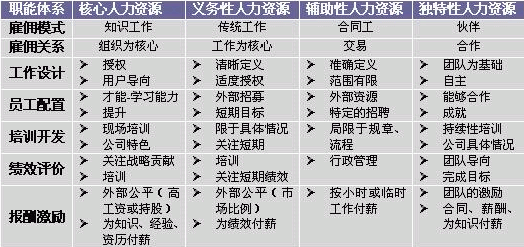| 分层分类的战略性人力资源管理模式 | |||||