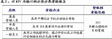 如何构建分层分类的人力资源管理体系 组织是公司目标实现的载体,构建分层分类的战略性人力资源管理体系首先要求在公司战略层面上调整组织定位与结构。其基本目标是在重新梳理公司目前的组织结构、部门职责与部门内部岗位结构的基础上,重新确定部门职能定位、内部结构,对于在管理职能上有交叉或内部管理职能失衡的部门要进行适当调整,同时考虑强化如战略研究、市场开拓、人力资源管理等方面的功能或部门。但前期调整尽可能以梳理为主,待公司战略规划明晰后,再进行全面的组织结构调整。 1、战略性人力资源管理的组织基础——对企业纵向与横向权责体系的理顺 公司建立创新授权机制的前提是对企业中不同层级人员职能的重新定位和再认识。从垂直分层上看:应考虑“战略层—管理层—操作层”的分工;从横向分类看:应当考虑业务流程和工作职责的明晰化。 2、战略性人力资源管理的定位——对企业长期发展战略的系统规划 它要求企业必须突破传统的“人事”定位,从一种维持和辅助型的管理职能上升为一种具有战略意义的管理职能。以此提高人力资源在公司中的战略价值,保证公司的人力资源政策与公司的发展战略匹配,对人力资源进行系统规划。 公司的价值创造主体,是公司的领导层和核心业务类员工。价值创造主体的获取和业务能力提升,是公司人力资源规划的核心所在。人力资源规划是一种战略规划,着眼于为未来的企业生产经营活动预先准备人力,持续和系统地分析企业在不断变化的条件下对人力资源的需求,并开发制定出与企业组织长期效益相适应的人事政策的过程。它是企业整体规划和财政预算的有机组成部分,因为对人力资源的投入和预测。 3、战略性人力资源管理的价值评价体系——以关键业绩指标为核心的分层分类的目标管理 建立符合企业战略性人力资源管理要求的员工业绩评价系统,是当前企业人力资源管理走向客观和理性的突破口,也是进行薪酬分配,调动员工积极性的重要内容。分层分类的绩效评价系统是在公司战略与业务定位的基础上,从战略分解和市场压力传导的角度,配合各部门重新调整与定位,设计公司的KPI体系,对各个部门进行分层分类管理。从收入增长(利润、规模)、收入的结构性调整、成长性(增长率、目标达成率)、资产安全性(资产负债率、应收账款、存货等)、资产收益率、新市场开拓与培育、制度执行情况、经营单位的组织建设、人才管理、客户资源管理等要素出发设计可量化指标。总体思路为配合KPI目标管理的“分层分类”的考核体系: